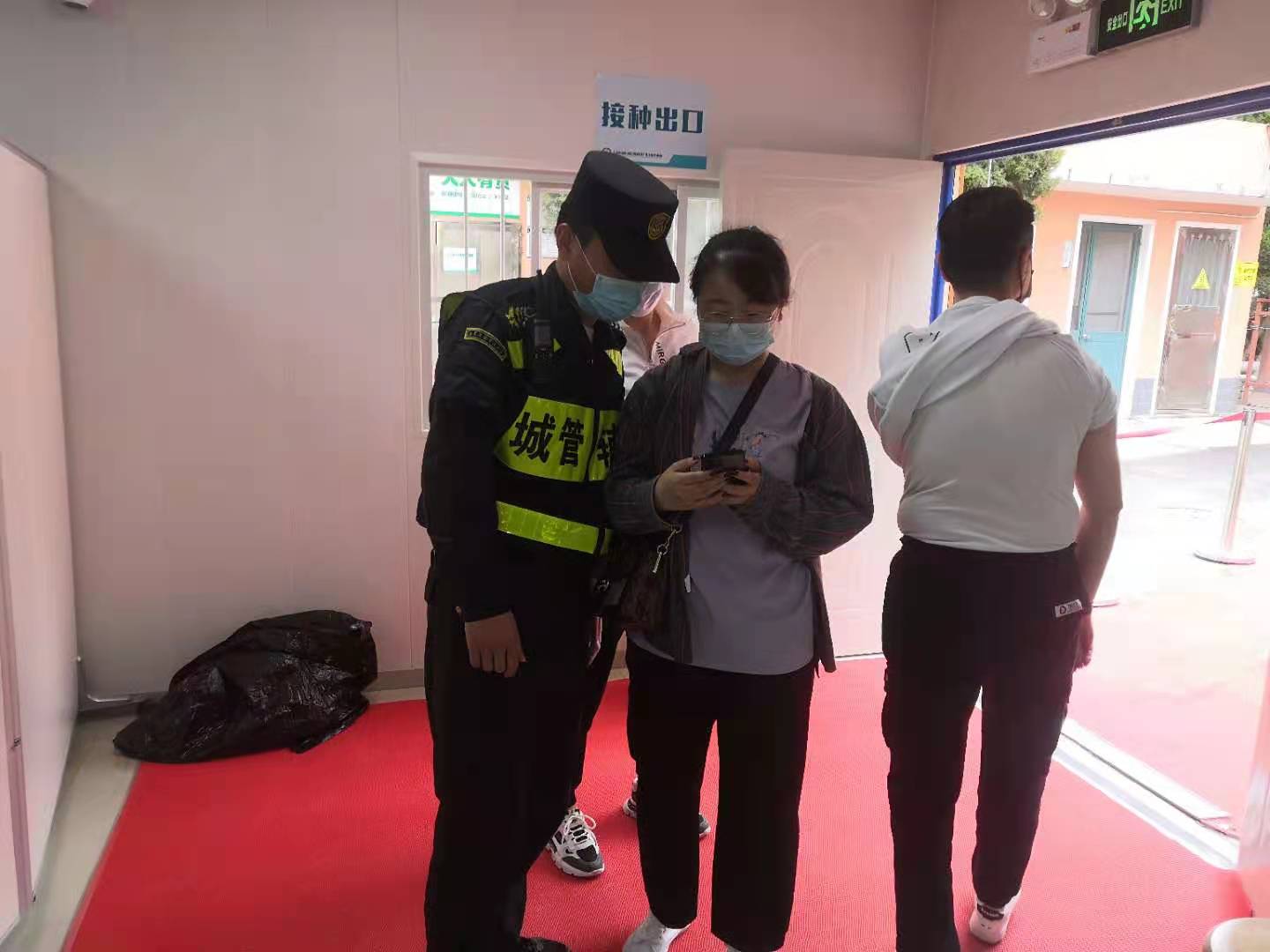 當天10:10左右,任明強在沈梅路社區醫院保障疫苗接種時(shí),在疫苗接種入口處撿到一部蘋(píng)果手機。因手機鎖屏,無(wú)法獲取信息與失主聯(lián)系,便在留觀(guān)區入口處等待。