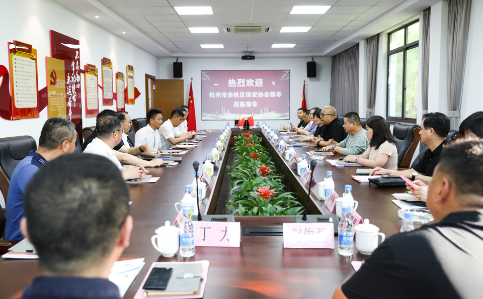 5月10日下午,杭州市余杭區保安協(xié)會(huì )會(huì )長(cháng)吳曉勤一行到宗保公司走訪(fǎng)調研,上海市保安協(xié)會(huì )秘書(shū)長(cháng)楊躍毅、辦公室主任李國玉等陪同調研。