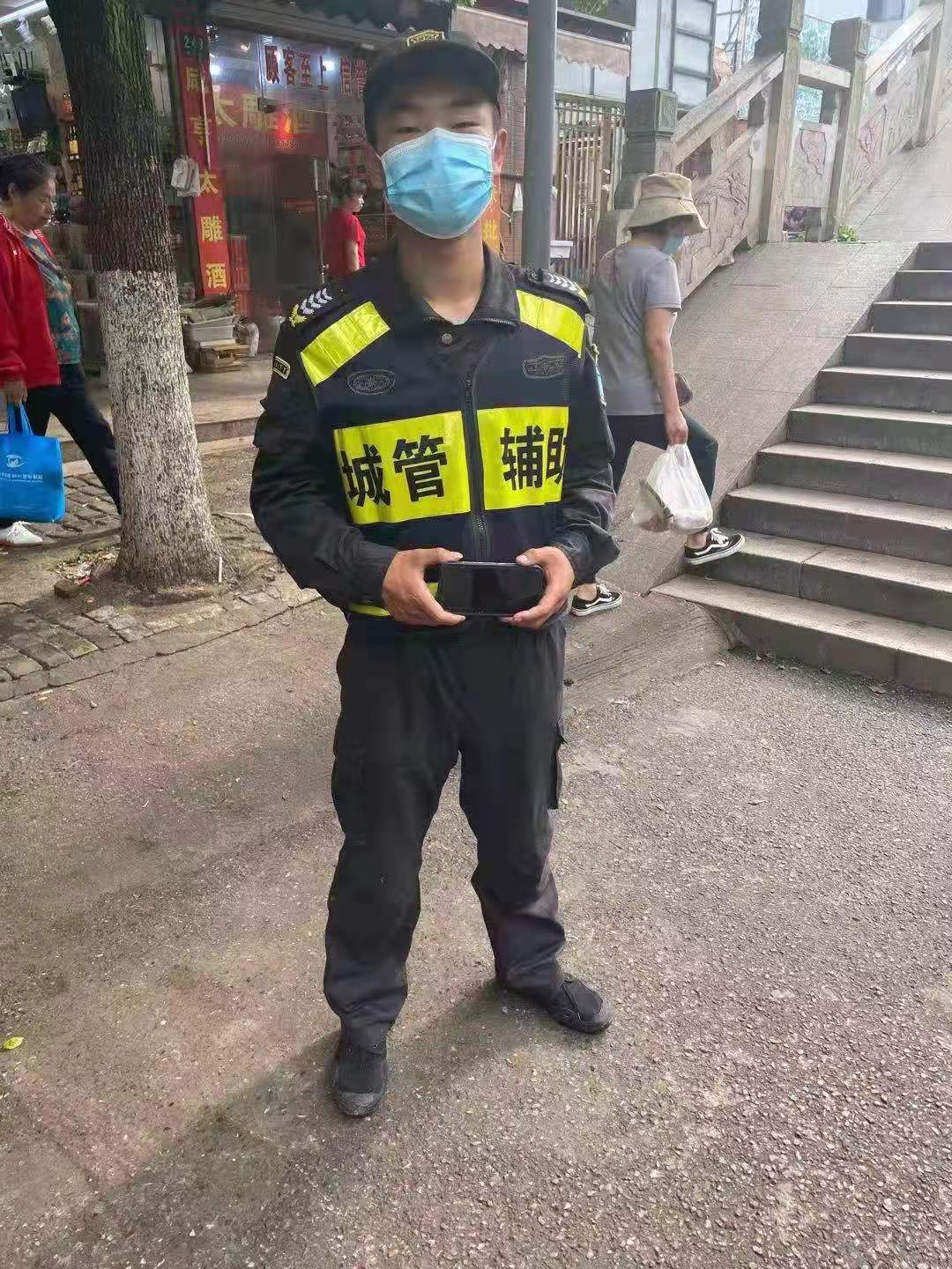 巡邏途中撿手機 歸還失主獲稱(chēng)贊—周浦市容項目隊員撿到手機