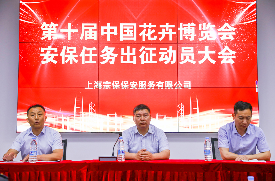 2021年5月21日至7月2日,第十屆中國花卉博覽會(huì )(簡(jiǎn)稱(chēng)“第十屆花博會(huì )”)將在上海崇明舉辦,宗保公司是第十屆花博會(huì )其中的一支輔助安保力量。為切實(shí)做好花博會(huì )的安保秩序維護工作,宗保公司于5月11日召開(kāi)出征第十屆中國花卉博覽會(huì )安保動(dòng)員大會(huì )。