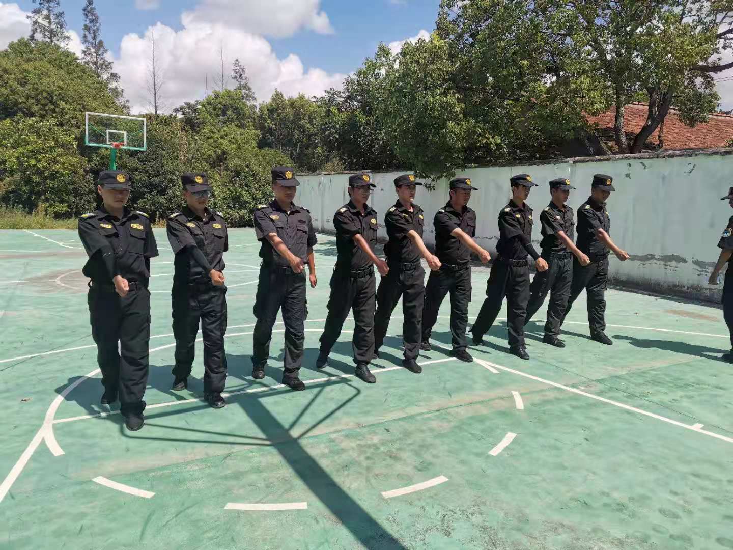 為培養公司隊員嚴整的容姿,根據公司打造一支素質(zhì)好、作風(fēng)硬、紀律嚴保安隊伍的要求,各區域將小教員組織起來(lái)組建教導隊,集中進(jìn)行齊步跑步、整理著(zhù)裝、立正稍息、跨立、敬禮、文明用語(yǔ)、崗位職責等內容的培訓,提高小教員的組訓能力。培訓中,全體參訓人員不怕辛苦、不顧炎熱,以整齊的著(zhù)裝、認真的態(tài)度、飽滿(mǎn)的精神投入到訓練之中,充分展現了宗保隊員良好的精神風(fēng)貌。