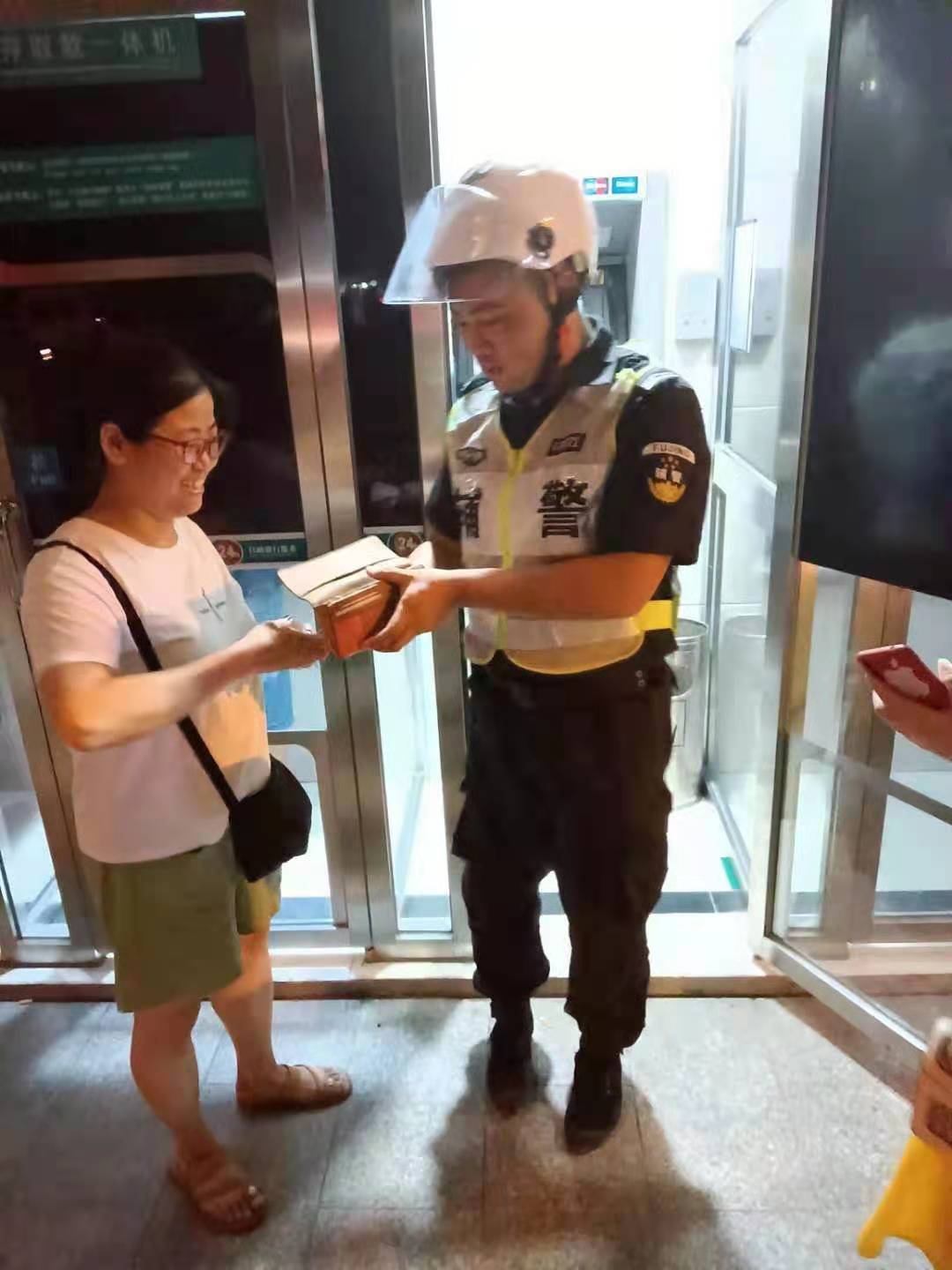 拿著(zhù)失而復得的手包,分文不少的錢(qián)款,女子連連稱(chēng)贊宗保隊員拾金不昧的行為。隨后,隊員回到崗位繼續巡邏。