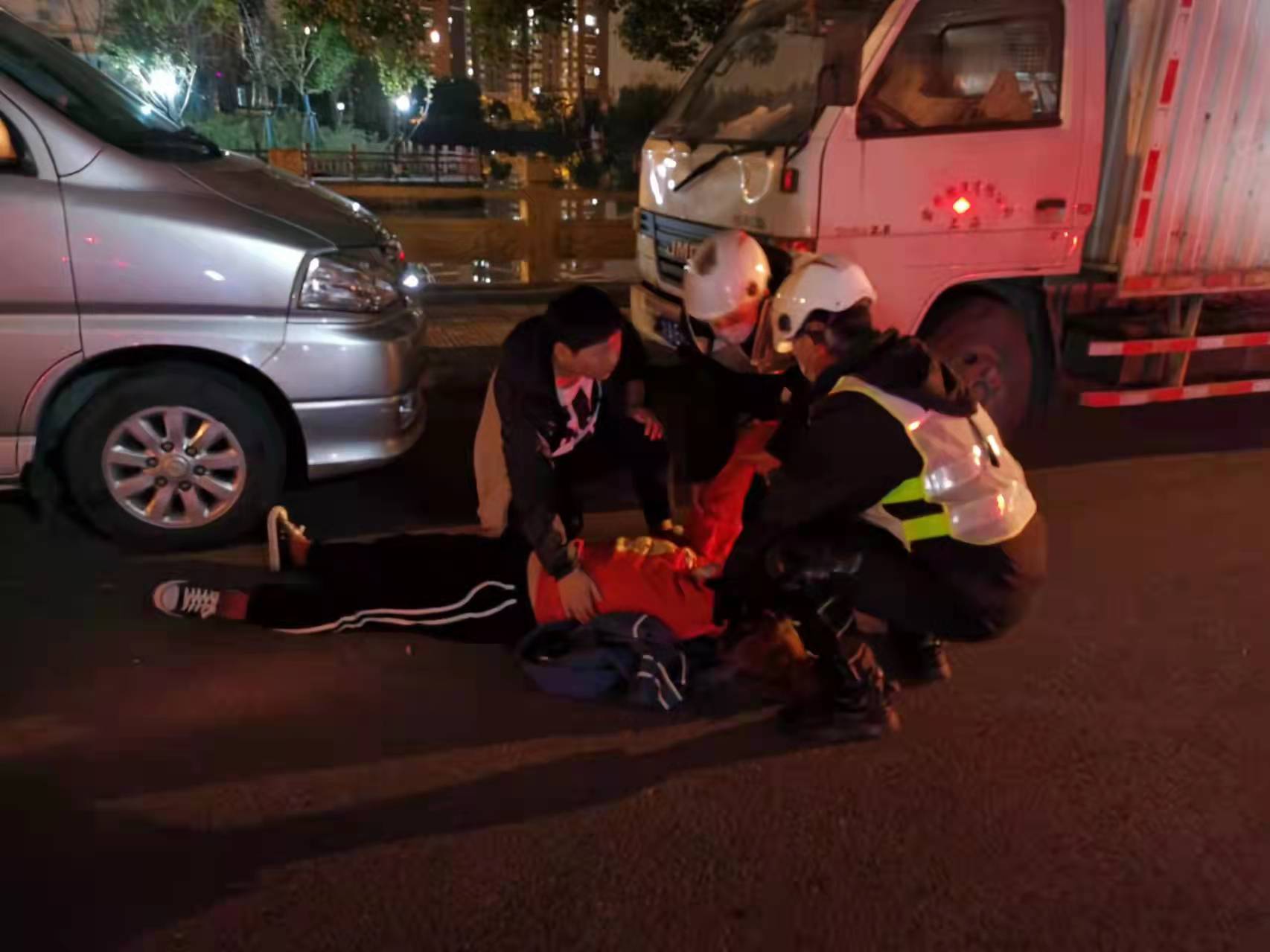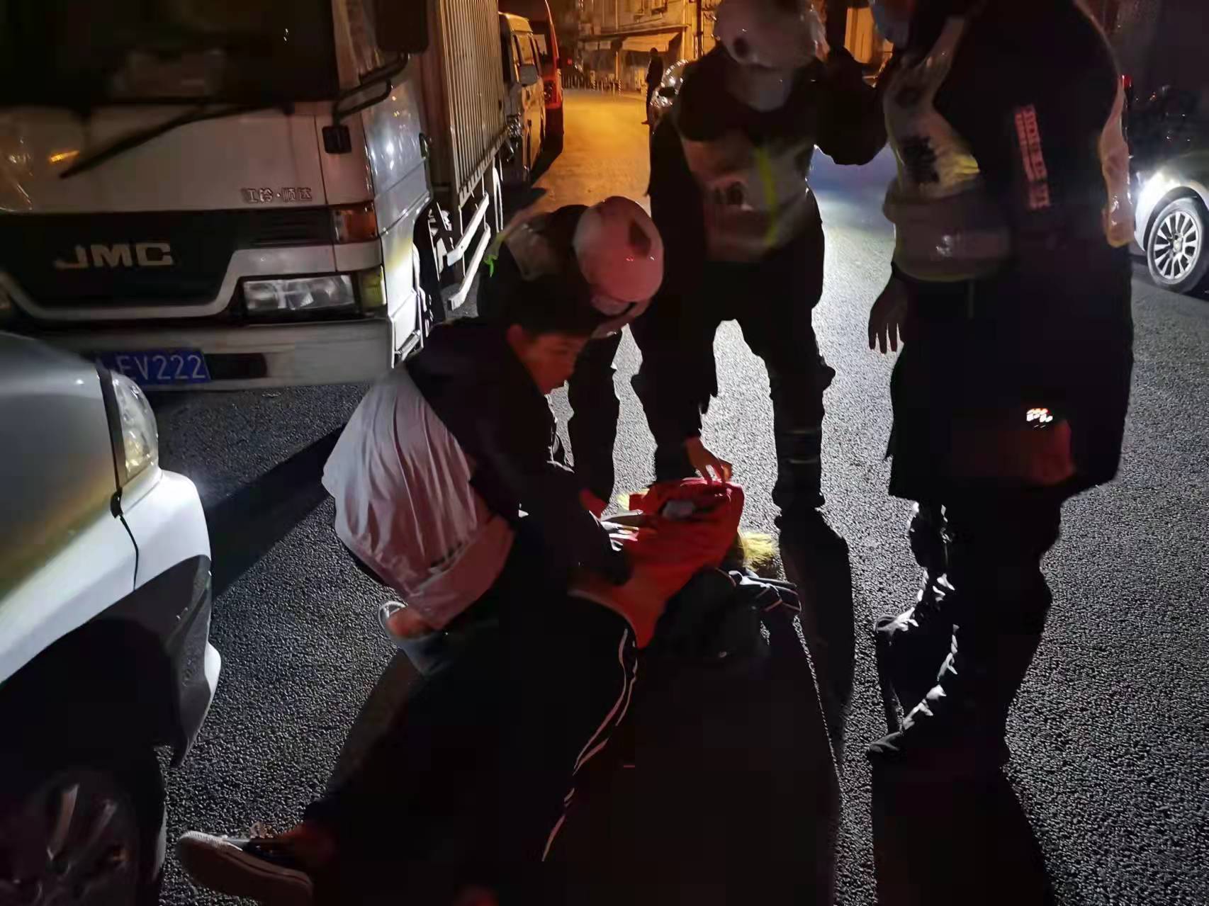 當天23:10,由楊季、趙新成、張帥和班組長(cháng)孫魁組成的巡邏小組,巡邏至橫沔江路96號河道附近時(shí),聽(tīng)見(jiàn)一男子呼喊“快來(lái)人啊,快來(lái)人啊,有人跳河了,有人跳河了......”。