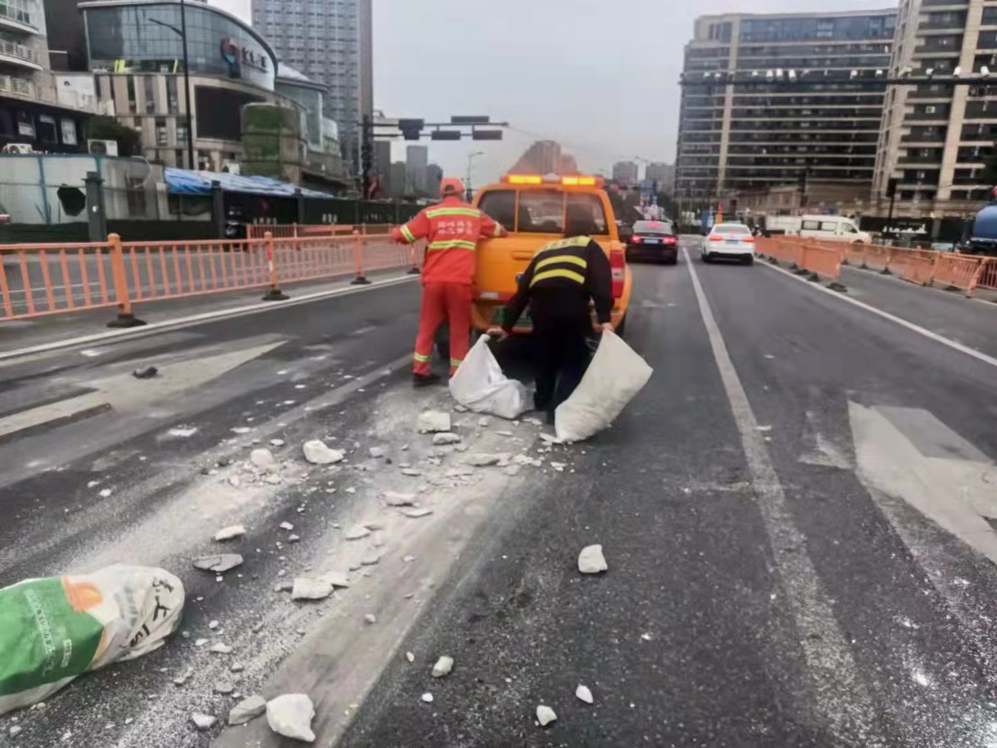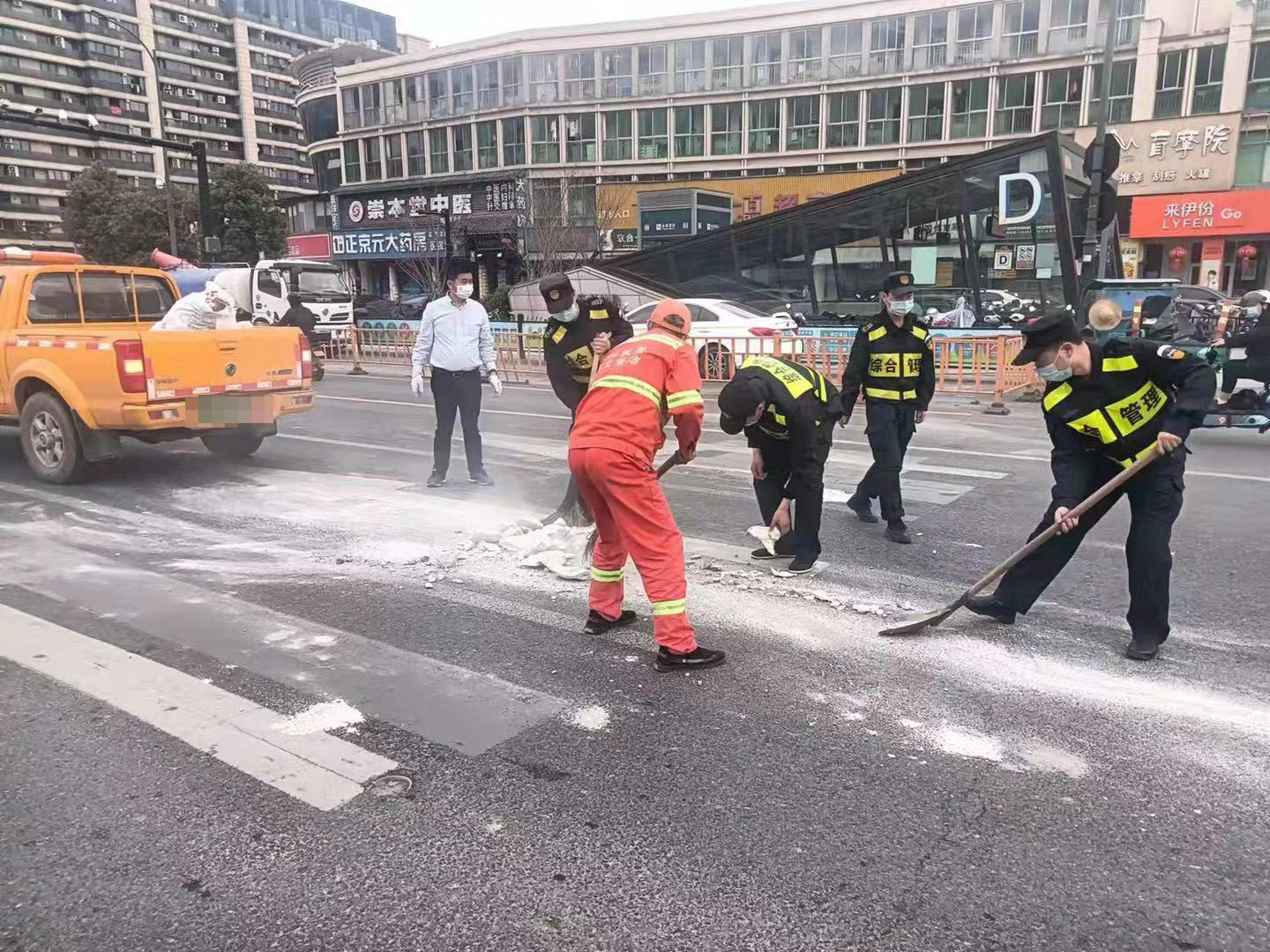 當日,楊培發(fā)、王正、張思俊、黃加武、張亞飛在金家渡地鐵站C出入口巡查時(shí),看見(jiàn)馬路中間有一堆路過(guò)車(chē)輛掉落的建筑垃圾,過(guò)往車(chē)輛紛紛避讓?zhuān)嬖谥?zhù)極大的安全隱患。