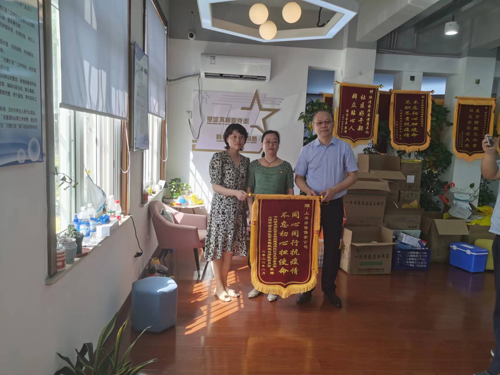 8月3日,宗保公司收到浦東新區高東鎮欣連苑居民區黨總支部和欣連苑居民委員會(huì )繡有“同心同行抗疫情 不忘初心擔使命”的錦旗,衷心感謝公司在疫情防控中所做的工作。