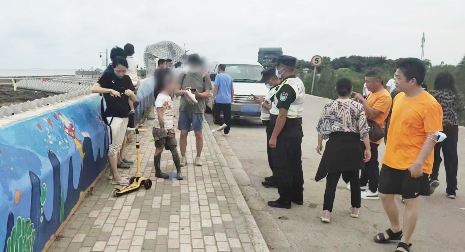當日17:30,焦國宏在巡邏途中遇到游客求助,稱(chēng)與其8歲女兒走散,他們來(lái)回反復尋找都沒(méi)有找到,希望隊員能夠幫助尋找。因事發(fā)地地處海堤,女童父母擔心發(fā)生意外,顯得十分焦急。