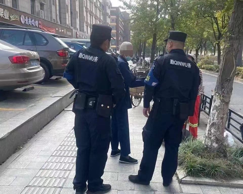 10月15日,浙江民泰公司駐杭州市余杭區良渚新城派出所輔助項目隊員護送老人回家。