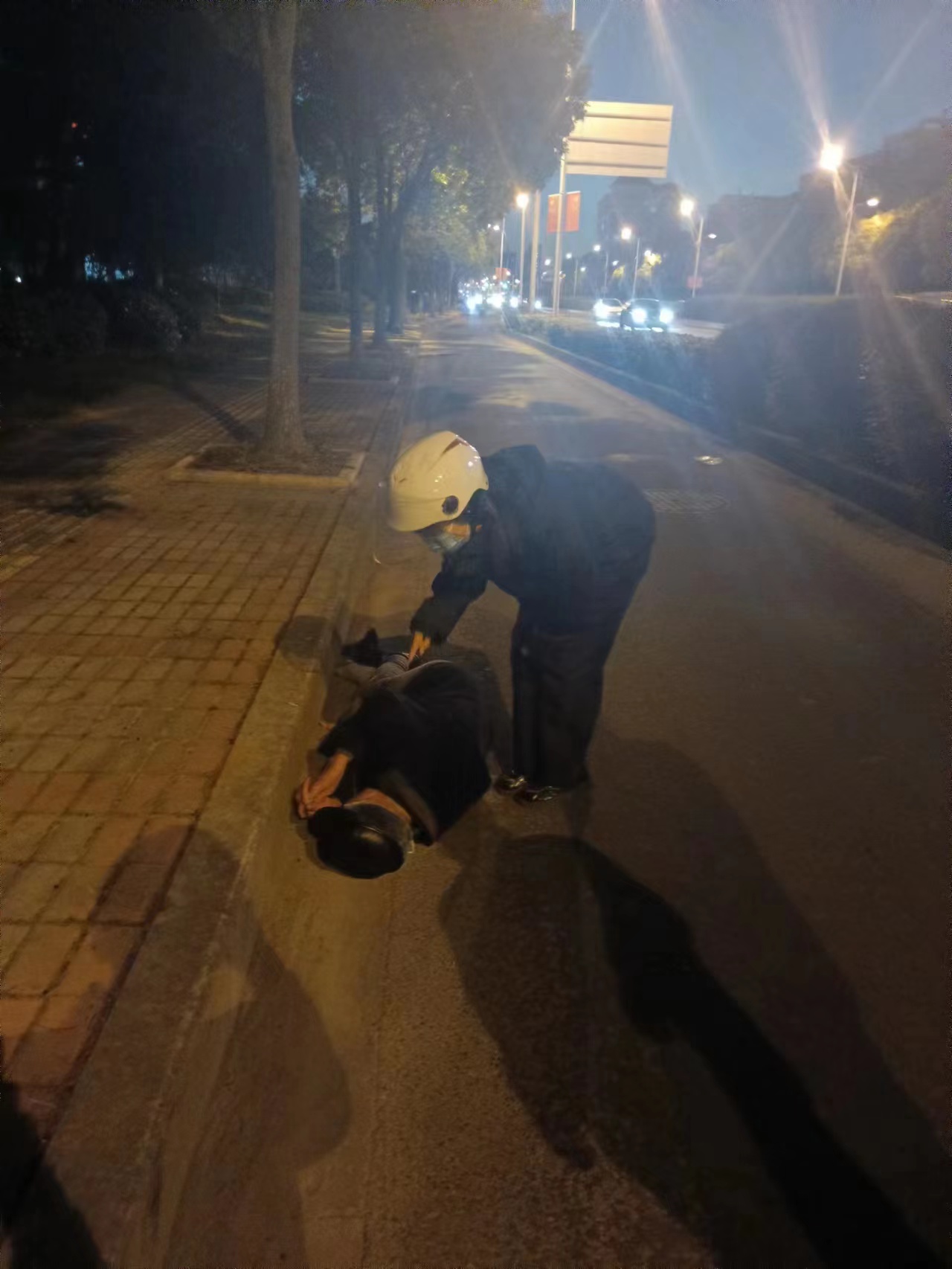當天17:00,公司員工柏會(huì )娟下班途經(jīng)周祝公路芙蓉花路時(shí),看到一位老人躺在非機動(dòng)車(chē)道上,來(lái)往騎行的非機動(dòng)車(chē)較多,天色已黑,光線(xiàn)暗淡,容易發(fā)生事故,比較危險。