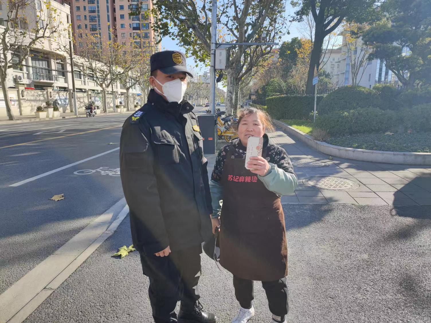 12月23日,宗保公司駐閔行區新虹街道項目員工撿到手機交還失主,受到感謝。