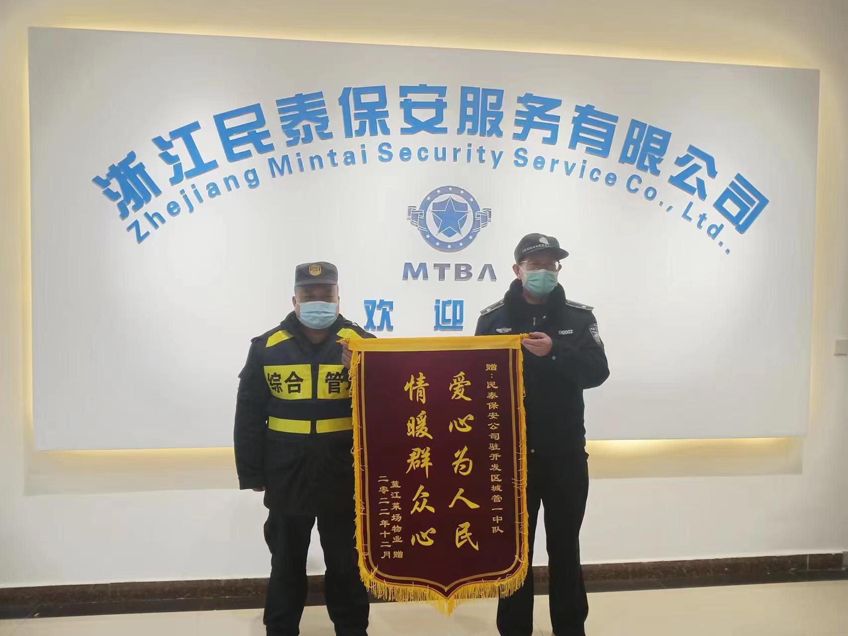 12月30日,浙江民泰公司駐杭州市臨平區東湖市容項目收到藍江菜場(chǎng)物業(yè)公司送來(lái)的一面繡有“愛(ài)心為人民 情暖群眾心”的錦旗,對民泰公司提供的優(yōu)質(zhì)服務(wù)給予了充分肯定和贊揚。