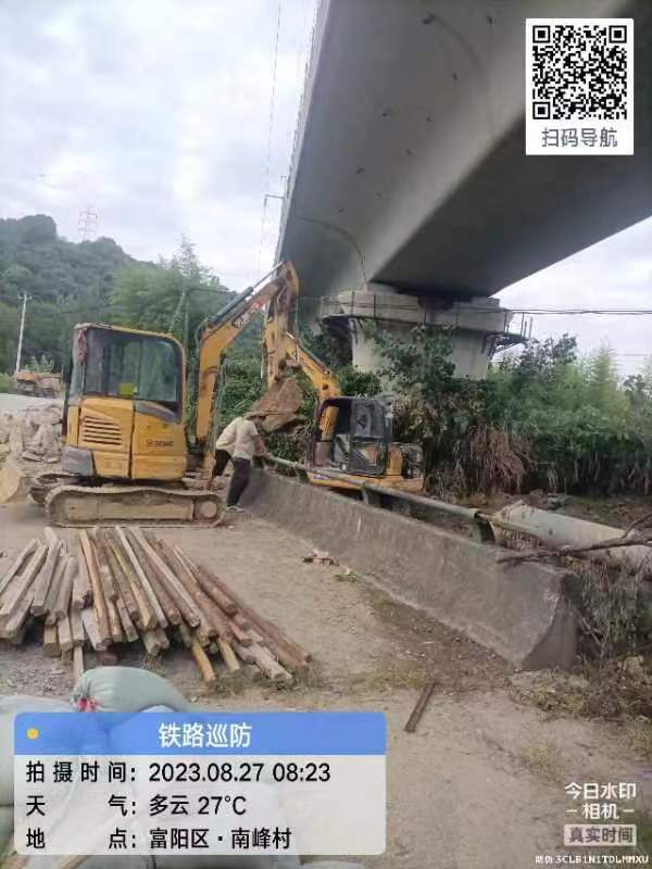 當日8:23,公司員工王文華巡查富陽(yáng)站至桐廬站區間山坎特大橋k52+017線(xiàn)路時(shí),發(fā)現有挖掘機正在鐵路橋邊紅線(xiàn)區域內作業(yè),涉嫌非法施工。王文華立即跑上前制止,并第一時(shí)間將情況報告杭州工務(wù)段桐廬車(chē)間、杭州鐵路公安處桐廬鐵路派出所。