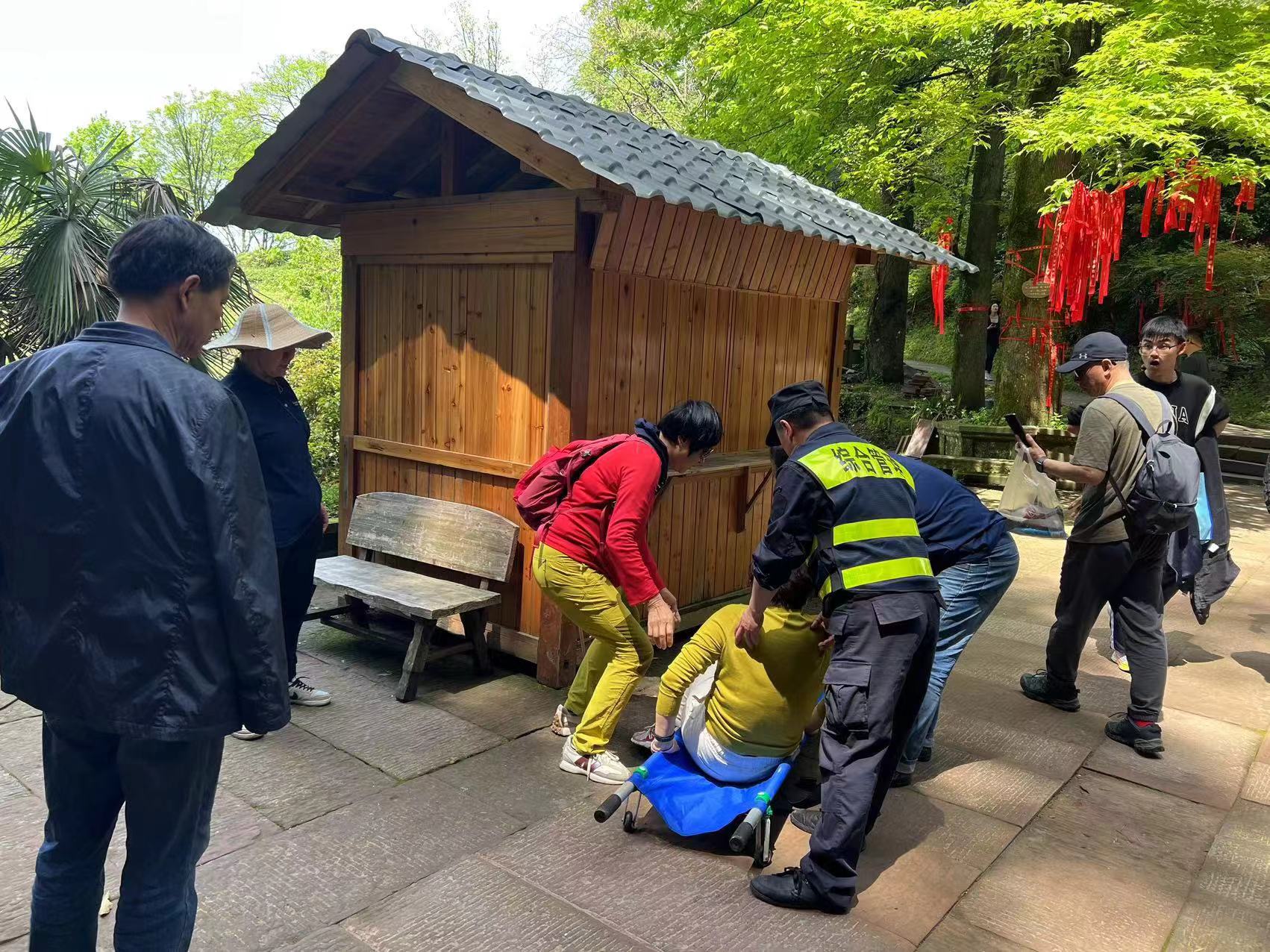 4月18日,宗保公司駐黃山市齊云山景區項目員工熱心幫助崴傷腳踝的女士。