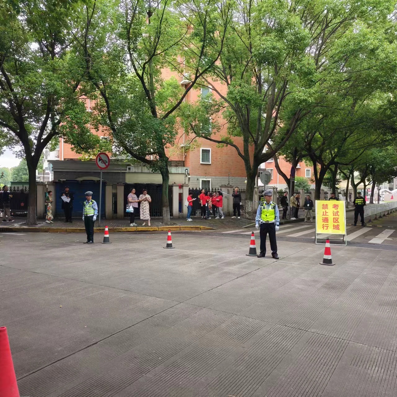 護考期間,參與安保的公司員工提前到崗到位,著(zhù)裝嚴整、精神飽滿(mǎn),協(xié)助民警、校方在考點(diǎn)門(mén)口拉起警戒線(xiàn)、設置警戒區,引導考生有序入場(chǎng),進(jìn)行考點(diǎn)周邊治安巡邏,指引過(guò)往車(chē)輛繞道行駛,提醒示意車(chē)輛人流控制噪音,全力以赴協(xié)助配合,為考生營(yíng)造了一個(gè)安全、安靜、有序的考試環(huán)境。