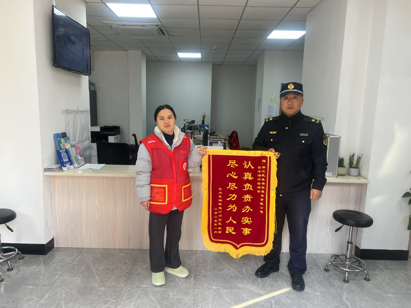 01浙江民泰公司收到杭州市東湖街道汀州社區的錦旗