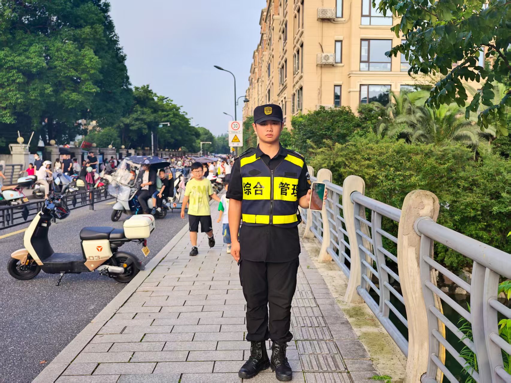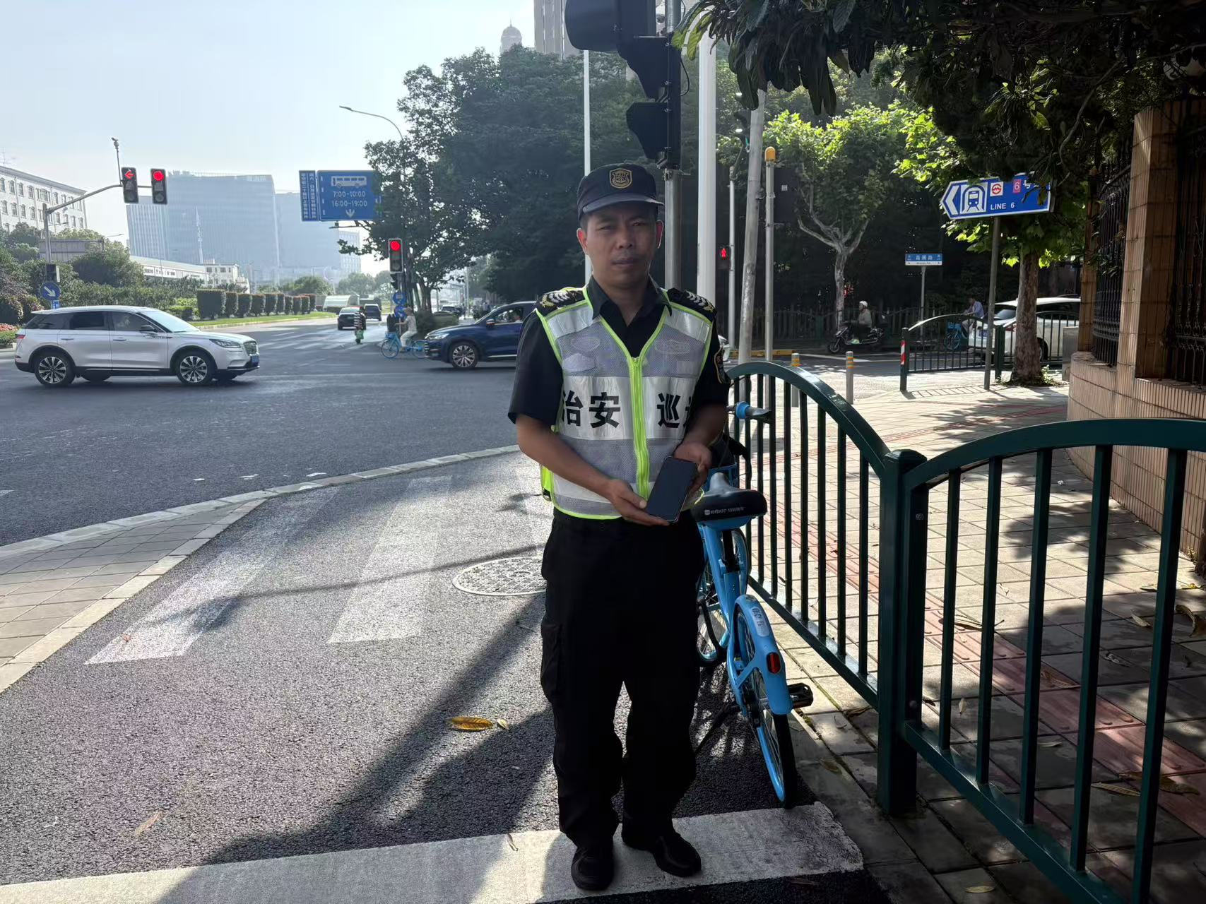 6月12日17:40,浙江民泰公司駐杭州市余杭區五常街道市容項目員工李天浩和牟倫申在五常街道荊長(cháng)路與天竺路交叉口執勤時(shí),撿到一部VIVO手機,隨即報告了帶班組長(cháng),并在原地邊執勤邊等待失主。