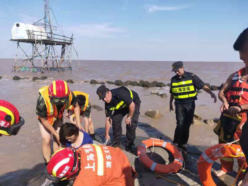 上海宗保保安服務(wù)有限公司南匯新城項目的城管輔警隊員呂永峰、周柳星、羅玉壽發(fā)現這一險情后,一邊向值班人員匯報,一邊報警請求救援。待消防隊員趕到現場(chǎng)后,積極參與救援。最終,在多方努力下,受困的游客成功獲救。