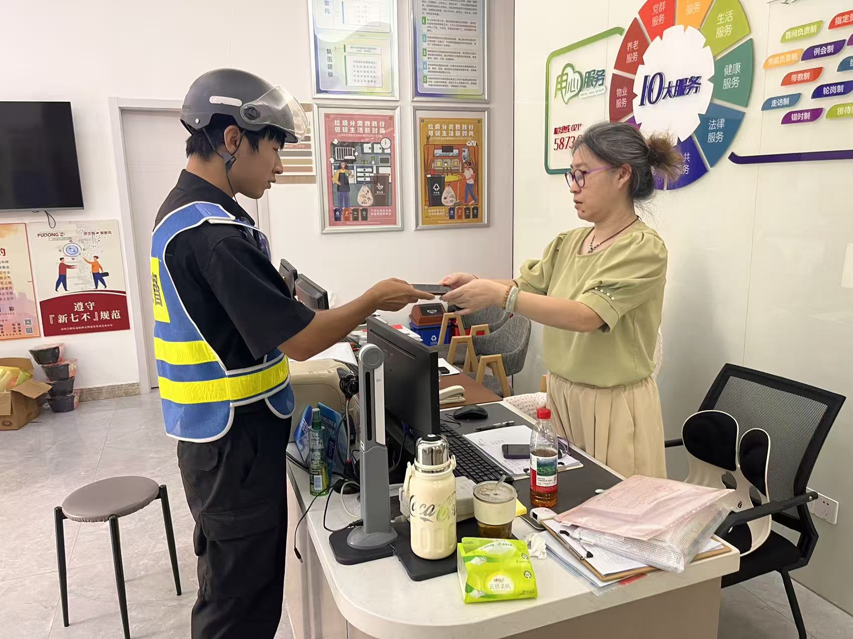 宗保公司駐浦東新區南碼頭市容項目員工桑飛撿到現金等物品歸還失主