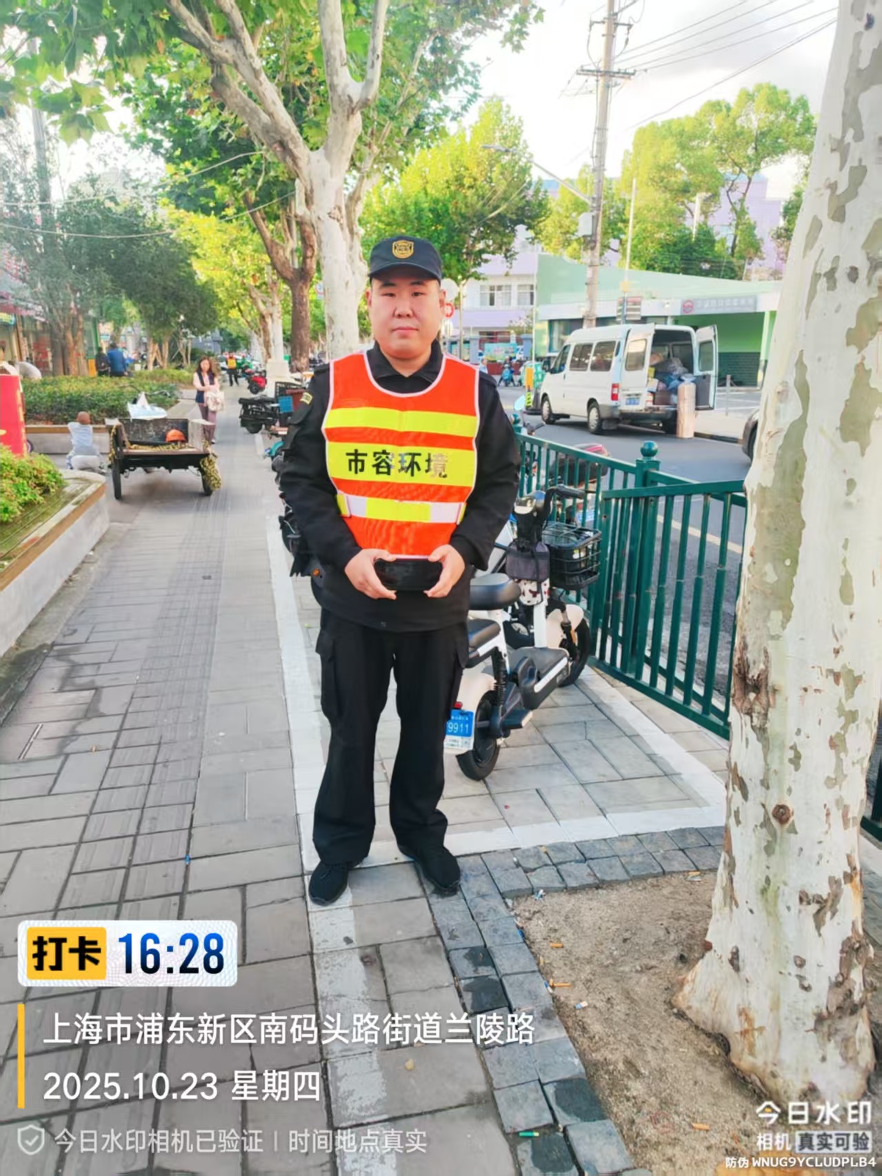 10月23日16:28,宗保公司駐浦東新區南碼頭市容項目員工丁曉樂(lè )在蘭陵路值勤時(shí),撿到一部蘋(píng)果手機。報告項目負責人后,丁曉樂(lè )便在原地邊值勤邊等待失主。