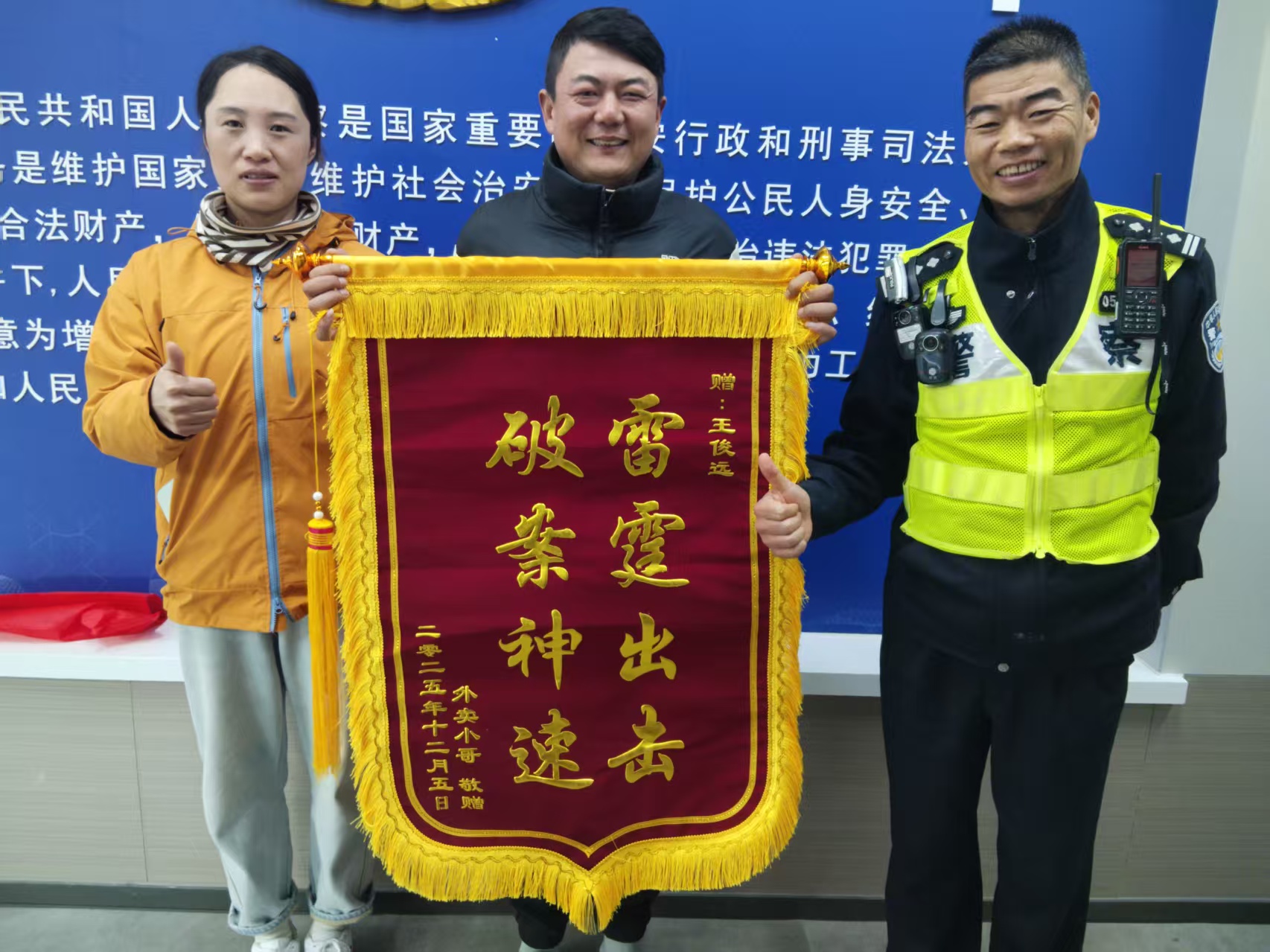 宗保公司員工協(xié)助民警迅速追回外賣(mài)獲贈錦旗