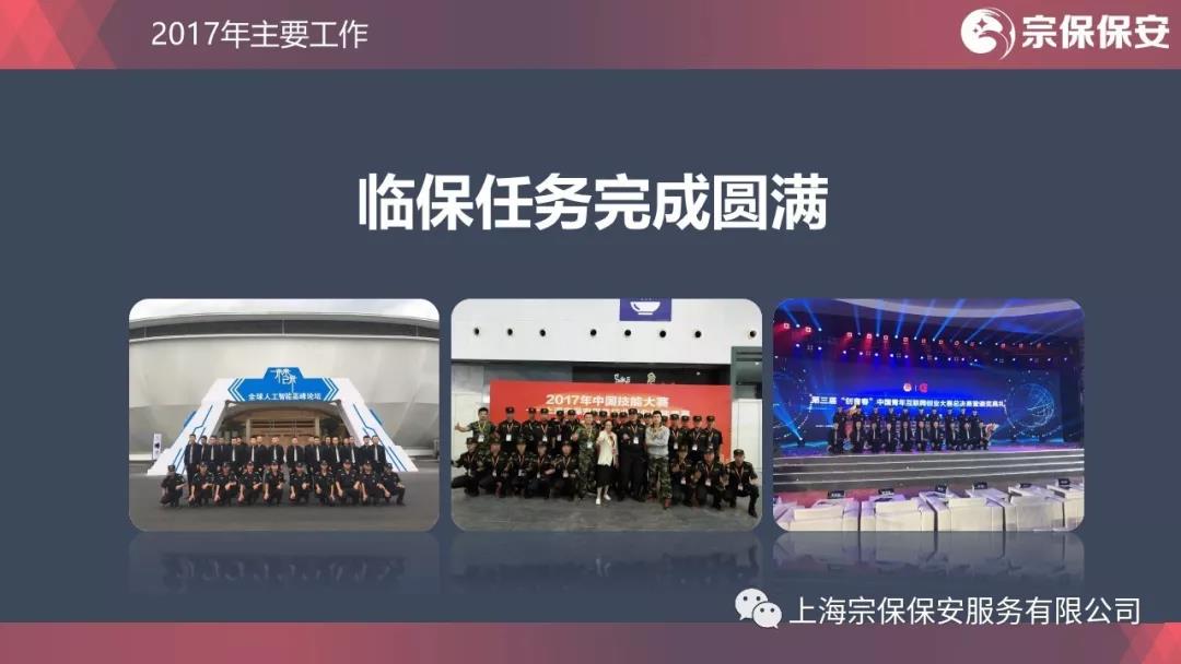 為百姓排憂(yōu)解難,為政府保駕護航。上海國際馬拉松比賽、中國產(chǎn)業(yè)互聯(lián)網(wǎng)大會(huì )、中國服裝杭州峰會(huì ),杭州春浪音樂(lè )節,青年企業(yè)家峰會(huì ),人工智能高端峰會(huì ),“五一”、“十一”臨港系列活動(dòng),大型活動(dòng)安保一項接一項,人氣爆棚,又秩序井然?;顒?dòng)現場(chǎng)秩序維護、交通疏導、路線(xiàn)警衛、停車(chē)場(chǎng)管理,處處都有宗保人的身影。有作為才能有地位。腳踏實(shí)地的宗保人用自己的實(shí)際工作贏(yíng)得了社會(huì )的認可和尊重。