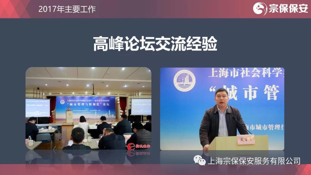 請進(jìn)來(lái)虛心請教,走出去敞開(kāi)交流。2017年是上海市城市管理高峰論壇開(kāi)辦的第二年,公司連續兩年受邀參加,并做主題發(fā)言。敞開(kāi)心扉講實(shí)話(huà),集思廣益謀發(fā)展。公司精細化管理的經(jīng)驗做法系統、實(shí)在、管用,引起與會(huì )者強烈的共鳴。共鳴的背后是宗保人對工作的認真負責、注重實(shí)效、勇于創(chuàng )新,是宗保人九年如一日的探索與堅守?!昂<{百川、追求卓越、開(kāi)明睿智、大氣謙和”的上海精神,在宗保人身上得到很好的體現。