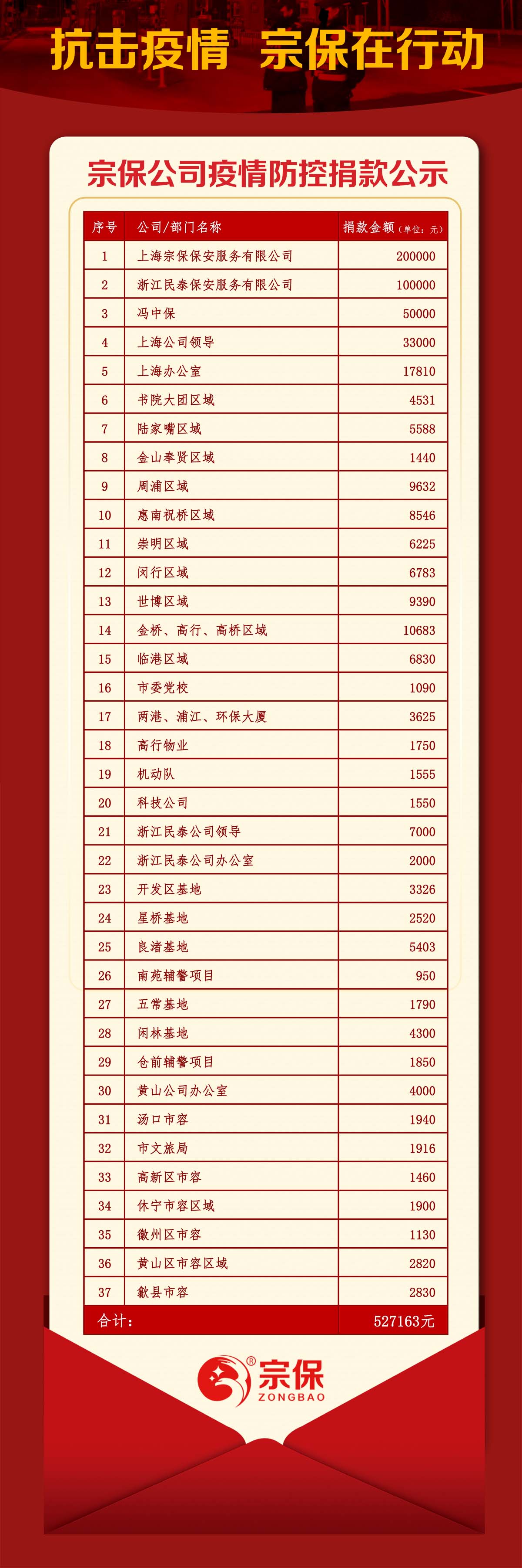 宗保公司疫情防控捐款公示