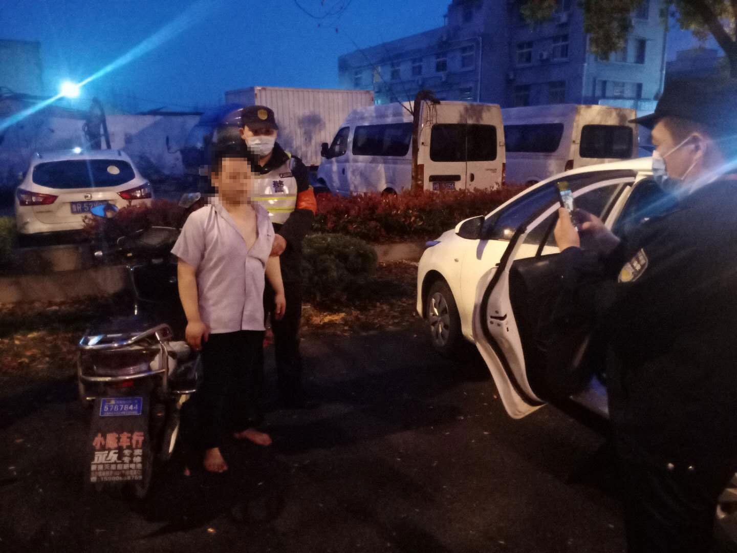 趙隊長(cháng)趕到現場(chǎng)后,孫魁和邵輝配合檢查核實(shí)該男子的身份信息、電瓶車(chē)輛信息,進(jìn)行全程拍照、錄相。后經(jīng)盤(pán)問(wèn),該男子承認己經(jīng)偷竊兩部電瓶車(chē)的事實(shí),并指認兩處盜竊現場(chǎng)。隨后,孫魁和邵輝配合趙隊長(cháng)將該嫌疑人移交孫橋派出所處理。