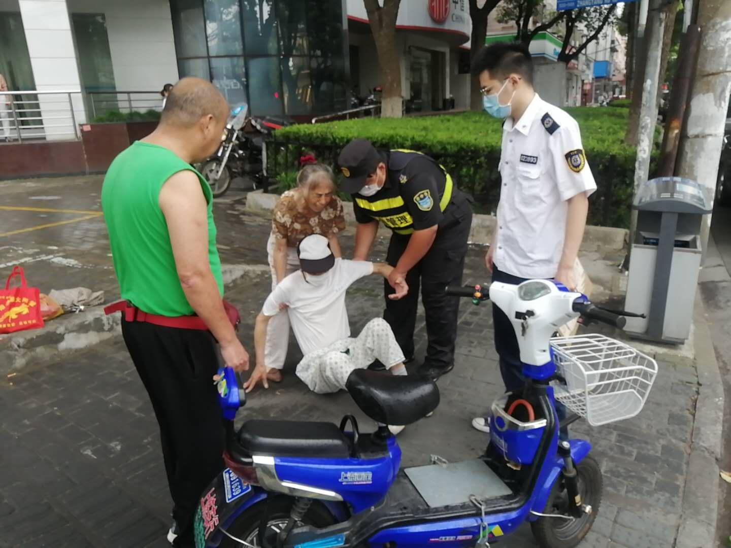 8月4日,宗保公司駐高橋市容隊員鄭世豪和陳睿幫助摔傷老人,獲得好評。