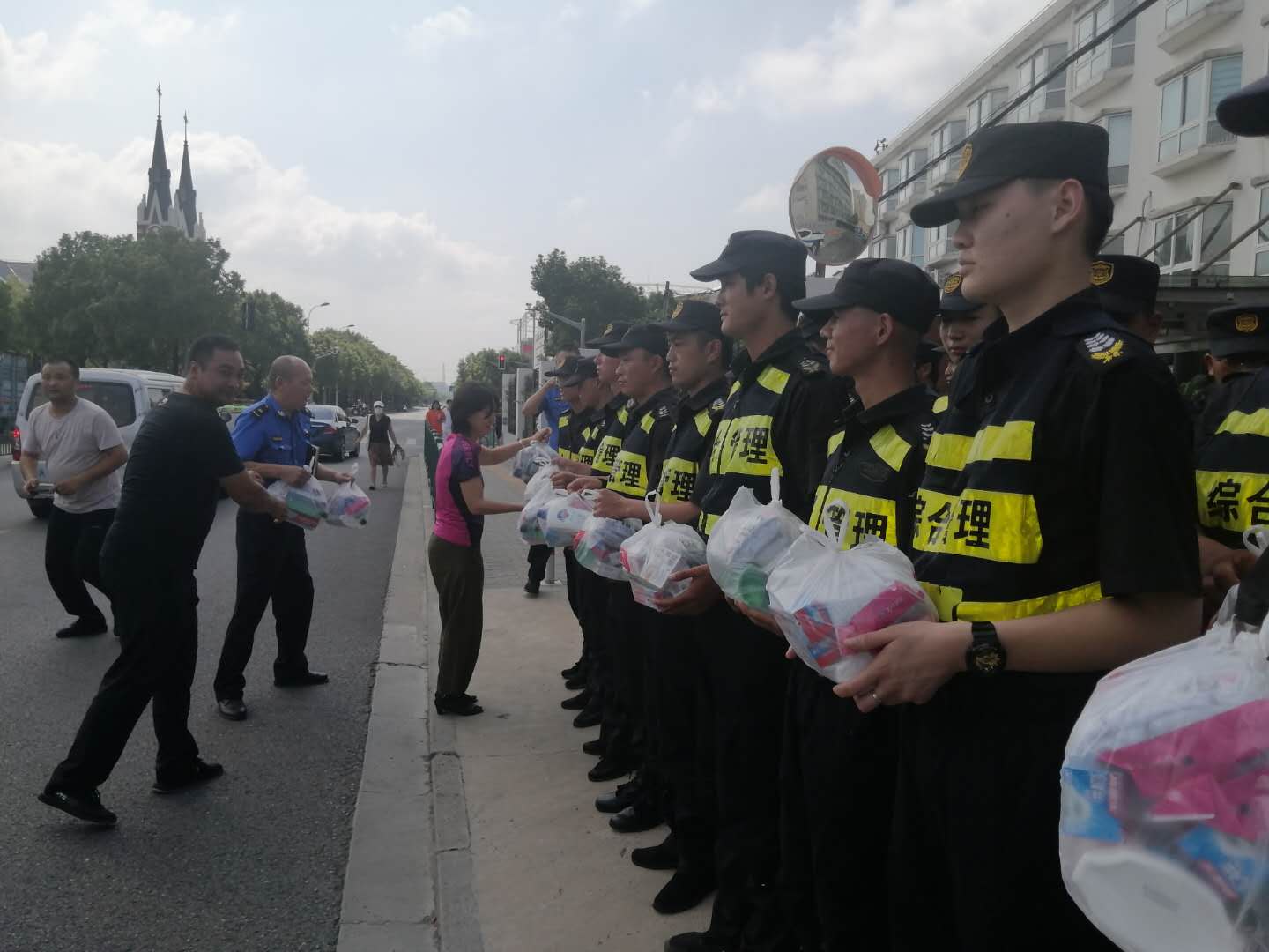 9月2日10:00,三林鎮城管中隊隊長(cháng)陳潔、副隊長(cháng)費濱和楊東社區書(shū)記黨艷、副書(shū)記趙霞等一行頂著(zhù)烈日,慰問(wèn)工作在一線(xiàn)崗位的宗保隊員,并為隊員們送上防暑降溫用品。 公司三林市容項目隊員以嚴謹細致的工作態(tài)度,認真負責的工作精神,不畏炎熱的工作熱情,得到了甲方的高度評價(jià),為公司贏(yíng)得了信譽(yù),樹(shù)立了良好的形象。 供稿人:馮四軍