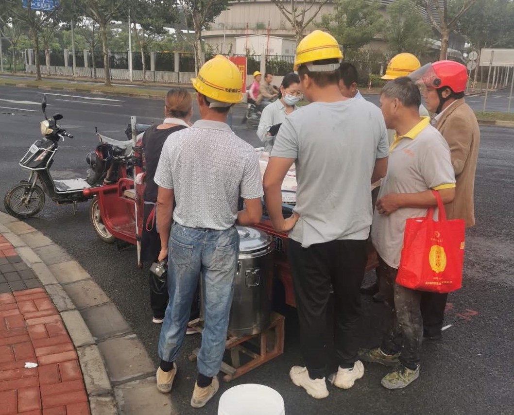 三林前灘項目工地自開(kāi)工以來(lái),每天有十余家流動(dòng)攤販占用著(zhù)城市道路,在車(chē)來(lái)車(chē)往的塵土中供餐,對市容環(huán)境衛生、工人食用安全、交通及施工安全等都造成了極大隱患。
