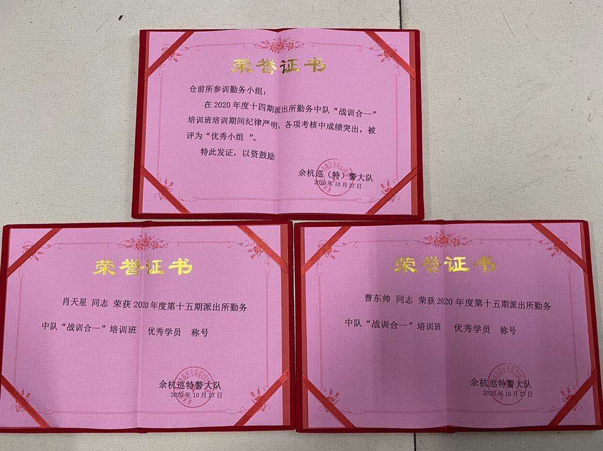 10月28日,浙江民泰駐倉前派出所項目3名隊員“戰訓合一”培訓獲佳績(jì),受到所領(lǐng)導的表?yè)P。
