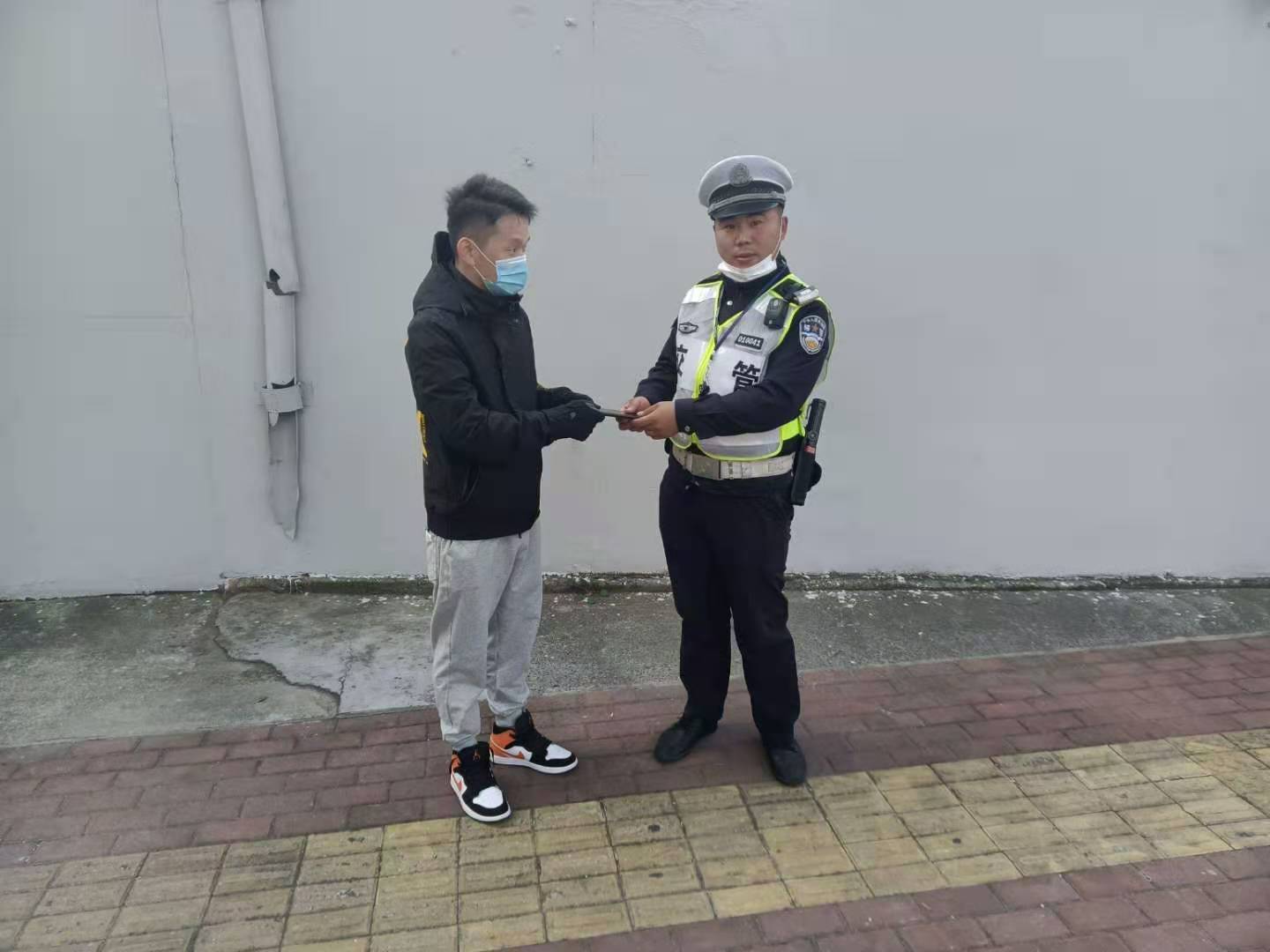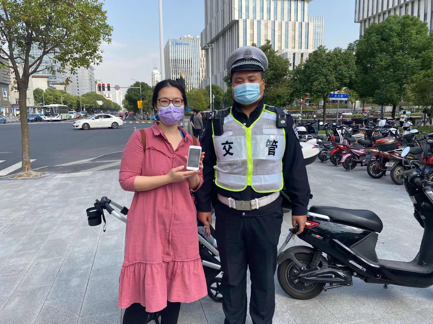 供稿人:許志剛拾金不昧好隊員 弘揚傳遞正能量——閔行虹橋交管輔警隊員撿到手機